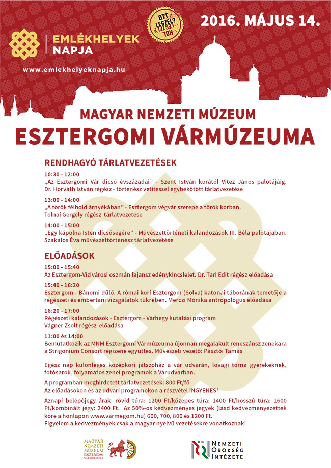 Intézményeink régészei, történészei a – Vármúzeum Nagytermében – előadásaikban Esztergom különleges történelmi korszakaiba kalauzolják el Önöket! A részvétel ezeken az előadásokon ingyenes.